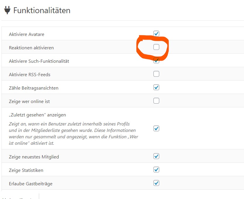 Ein entsprechendes Feld befindet sich auch in den Funktionalitäten, das auch nicht angehakt ist. Siehe Anlage.