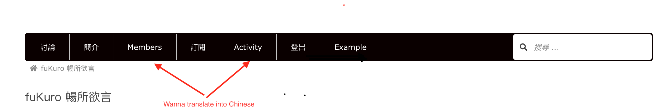 However, as I found the default menu items include some English title which are Members and Activity. I would like to know how to translate both into Chinese?