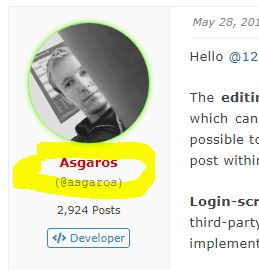 Profile: You can manage your profile by visiting the backend of your WordPress-site (my-site.com/wp-admin). The gray area below the username is the unique identifier used for the mentioning-functionality. You can hide this by disabling the mentioning-functionality in Forum -> Settings -> Mentioning.
